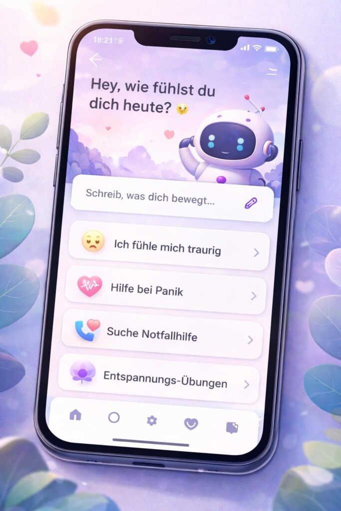 Das ist völlig okay. Die App stellt dir einfache Fragen und hilft dir Schritt für Schritt, deine Gedanken und Gefühle zu sortieren – ohne Druck, ohne Bewertung.